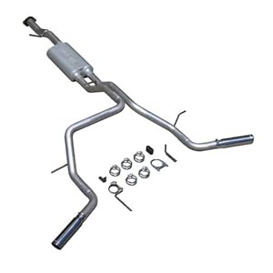 For the person who wants the look of a traditional dual exhaust system with all the benefits that a Flowmaster cat-back exhaust system provides. D.O.S. (Dual Out Side) systems are the perfect choice. American Thunder systems deliver a moderate to aggressive interior and exterior tone along with improved throttle response, power and mileage. Includes all necessary parts and hardware for easy installation.